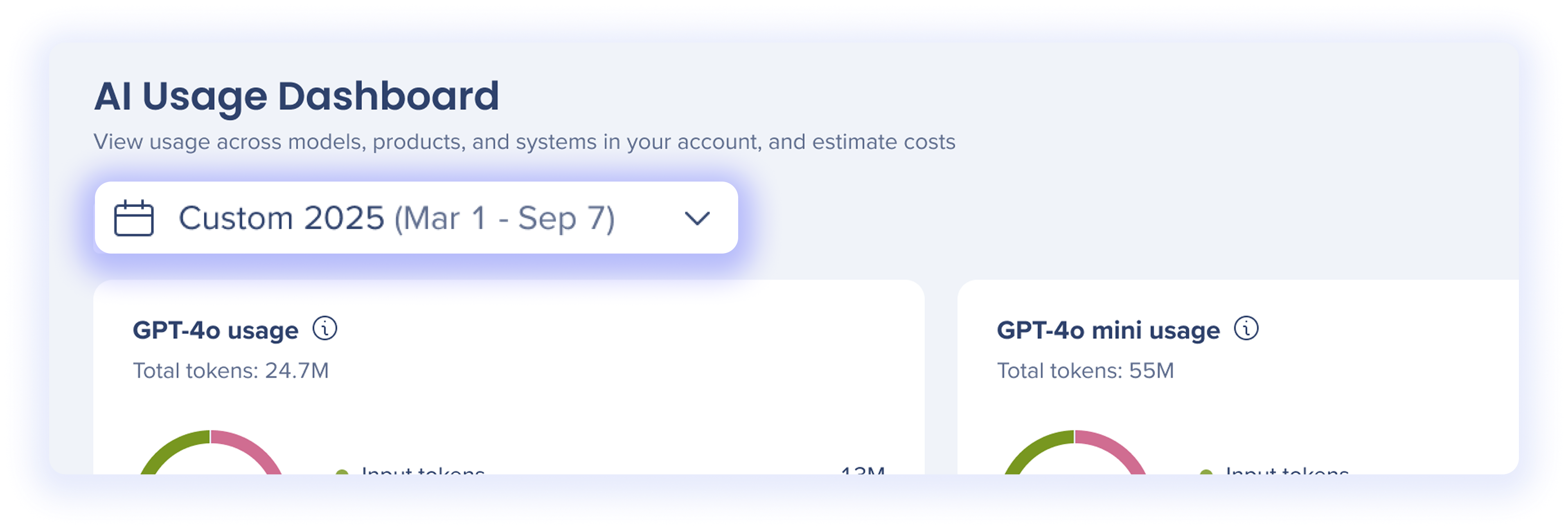 • Input and output token usage per AI model
