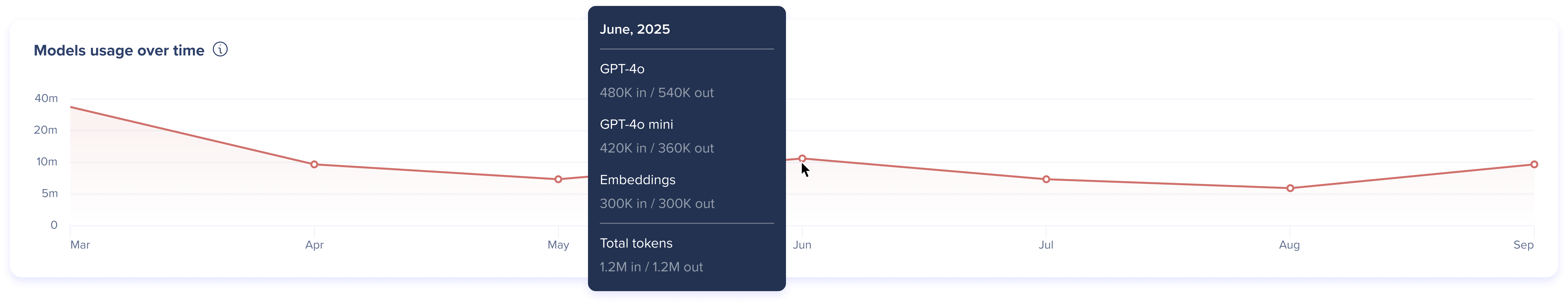 A line graph showing AI token usage trends over the selected period, across all configured AI models.