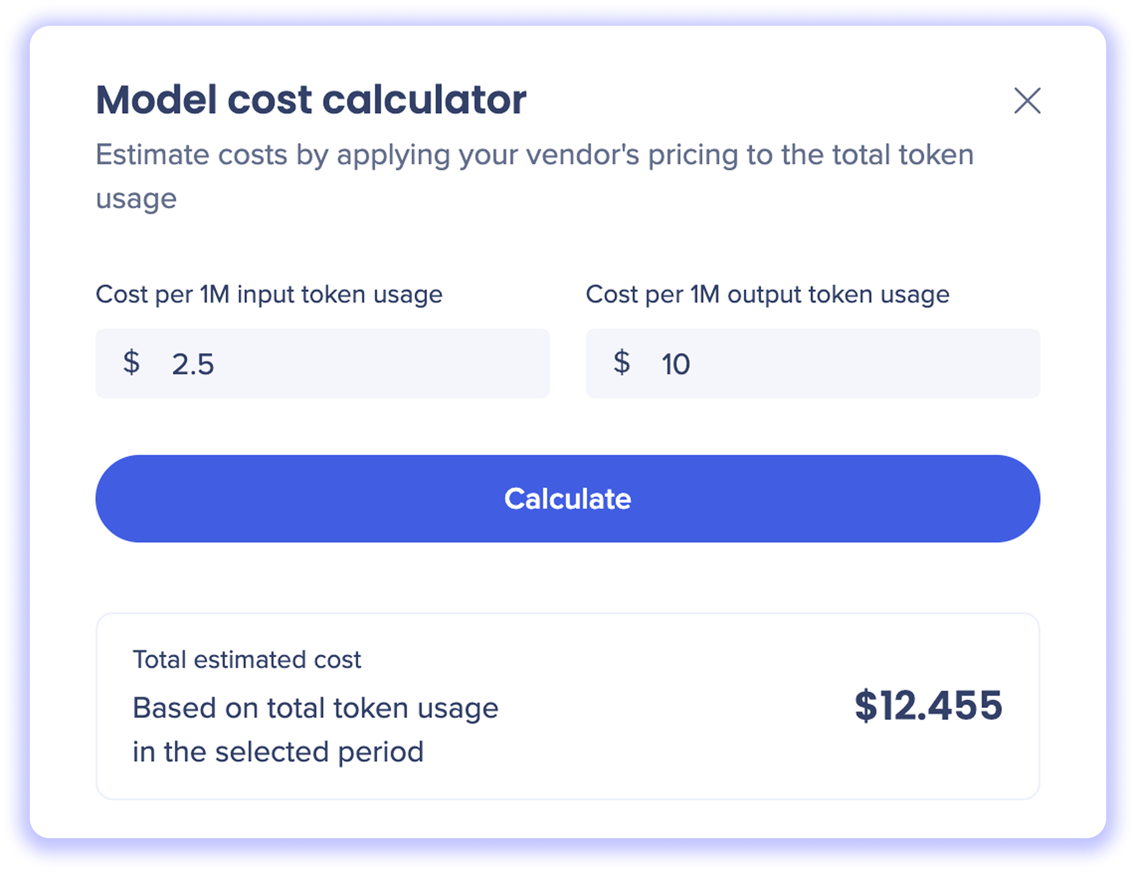 3. Enter the cost per output token based on your AI vendor's pricing