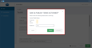 Anmerkung: Die Veröffentlichung des Bots hat keinerlei Auswirkungen auf andere in WalkMe bereits veröffentlichte Elemente. |