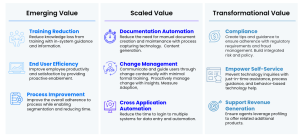 WalkMe-Kunden beginnen oft mit der Ausrichtung von Anwendungsfällen rund um die Reduzierung von Schulungen und die Verbesserung der Endbenutzereffizienz. Eine ausgereifte DAP-Strategie hat diversifizierte Anwendungsfälle und Wertmöglichkeiten.