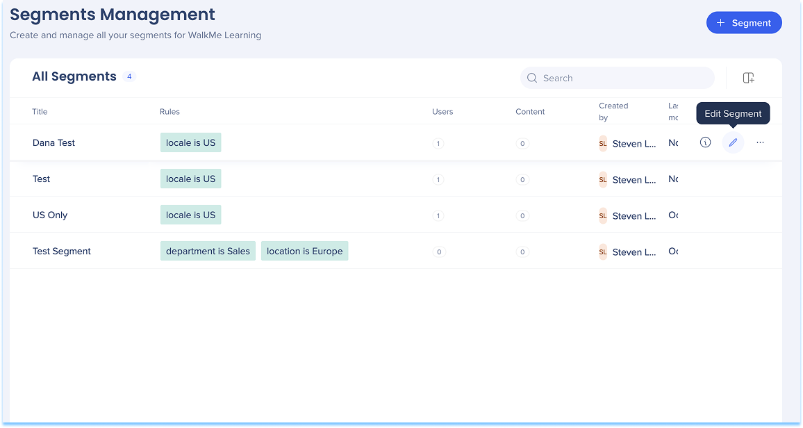 - Wählen Sie das Symbol Bearbeiten neben einem Segment aus.
