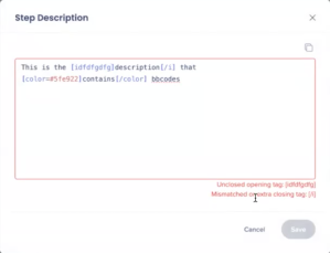 - Bearbeiten – wenn BBcode falsch eingegeben wird, wird eine rote Anzeige angezeigt
