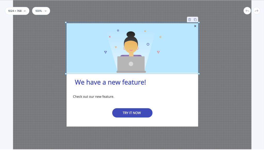 Um ein Objekt aus Ihrem ShoutOut zu löschen, markieren Sie das Objekt in der ShoutOut-Vorschau und klicken Sie auf das Papierkorbsymbol.