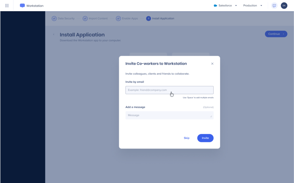 - Puedes hacer clic en Invitar a compañeros de trabajo y establecer una lista de correos electrónicos de empleados que deben obtener un enlace para descargar su Workstation.