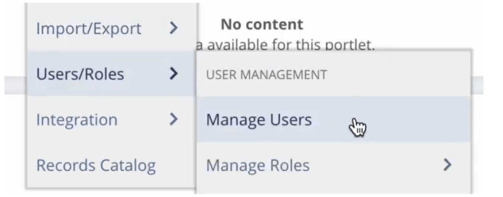 12. Ahora deberás asignar el nuevo rol de integración a un nuevo usuario de integración. Ve a Configuración - >Usuarios/Roles - >Administrar usuarios.