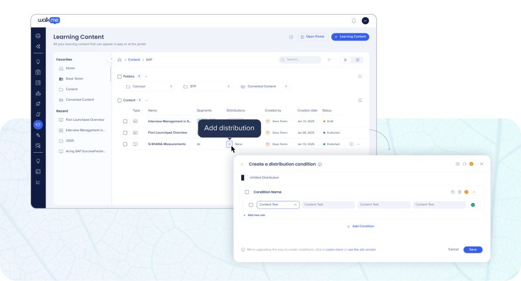 Integra el aprendizaje al flujo con WalkMe Learning Arc.