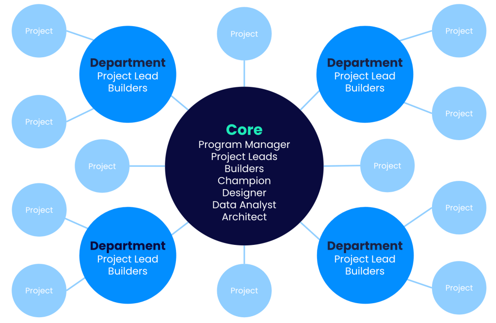 En algunas organizaciones, el programa de adopción digital evoluciona hacia un modelo descentralizado.