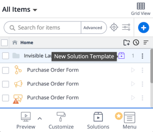 - Entra en la Galería de soluciones, ya sea seleccionando "Soluciones" en el pie de página del Editor o eligiendo "Solución predefinida" en el menú "+".