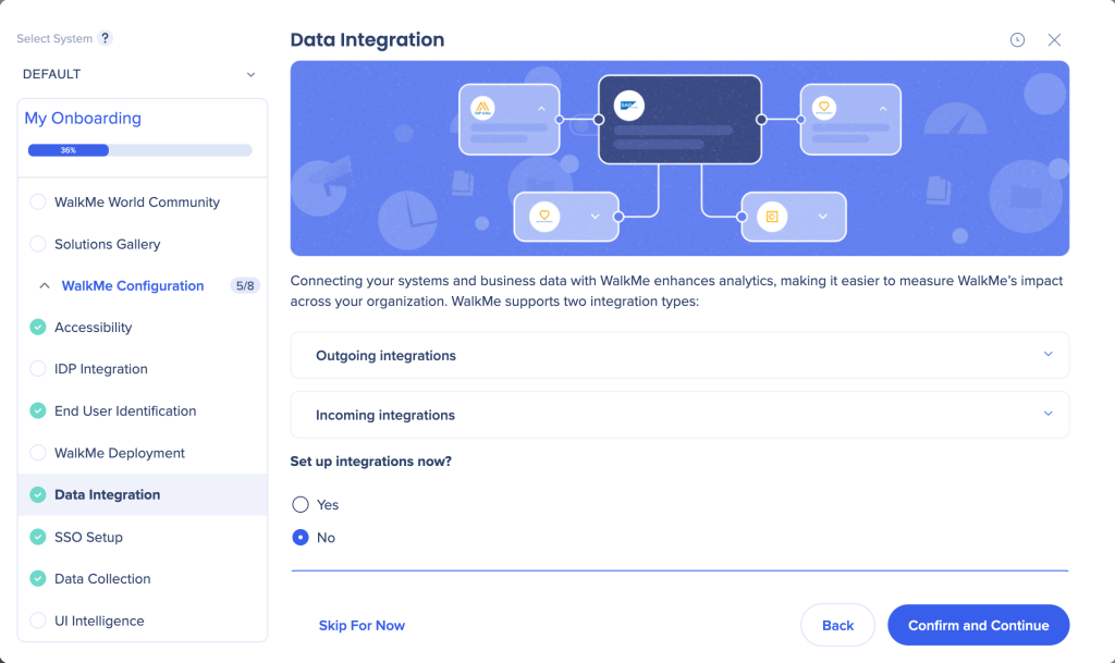 Puedes configurar integraciones de datos salientes y entrantes para mejorar el análisis de WalkMe: