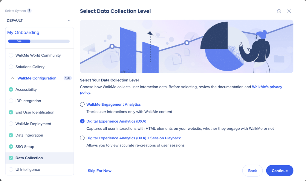 Elige el nivel de recopilación de datos que prefieras en WalkMe Insights: