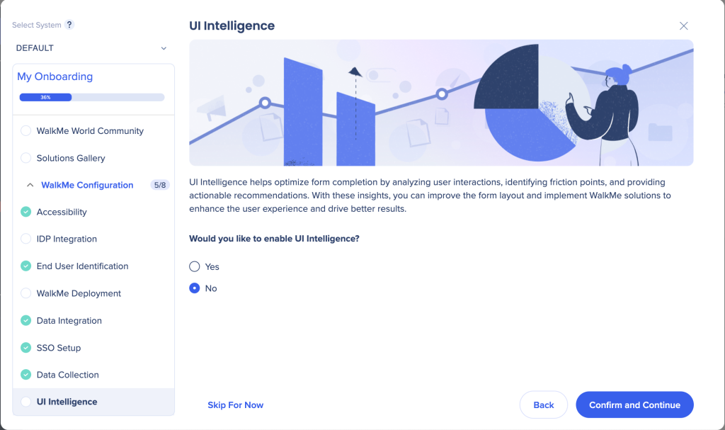 Si estás trabajando con sistemas compatibles (Salesforce Lightning, Microsoft Dynamics 365, ServiceNow, SAP SuccessFactors, SAP Concur), puedes activar Inteligencia de interfaz de usuario (UII).