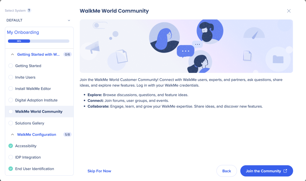 Accede a la comunidad utilizando tus credenciales de WalkMe.