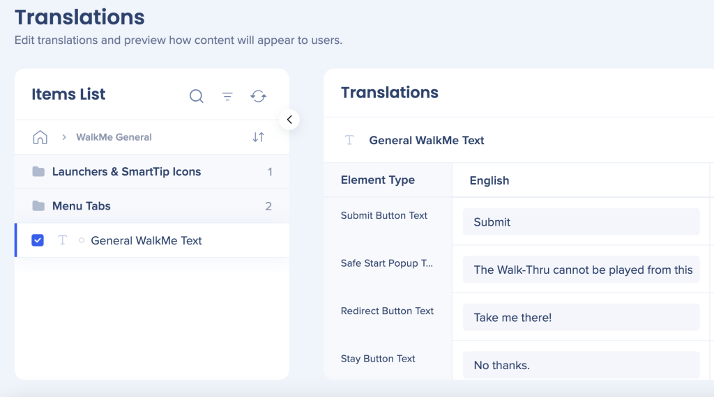| #walkme-survey-answer-text-XXXXXX | Les réponses au Survey, notamment :
