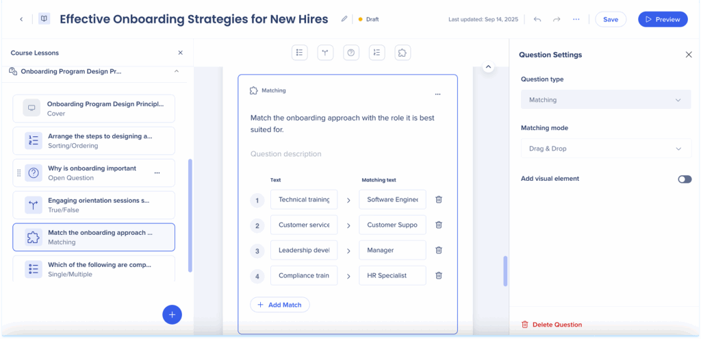 - Correspondance : créez des paires de texte que les apprenants doivent faire correspondre