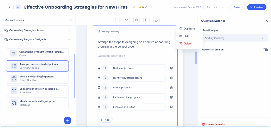 - Réorganisez les éléments ou les options de réponse à l'aide du curseur (le cas échéant)