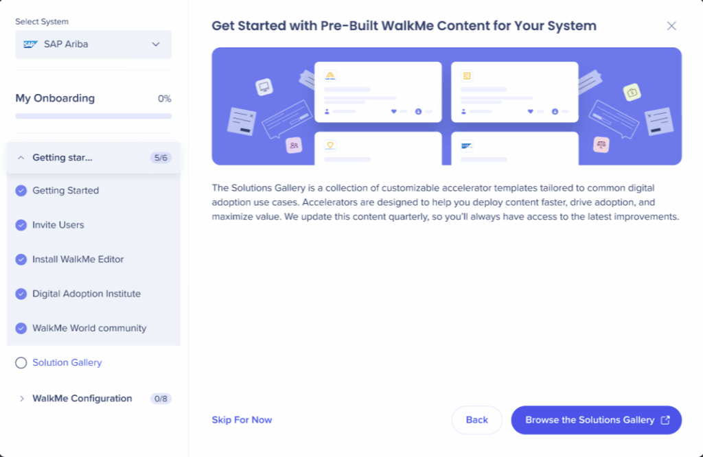 Si vous travaillez avec les systèmes SAP, vous aurez accès à la galerie des solutions, qui dispose de modèles d'accélérateur personnalisables.