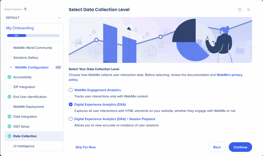 Choisissez votre niveau préféré de collecte de données dans WalkMe Insights :