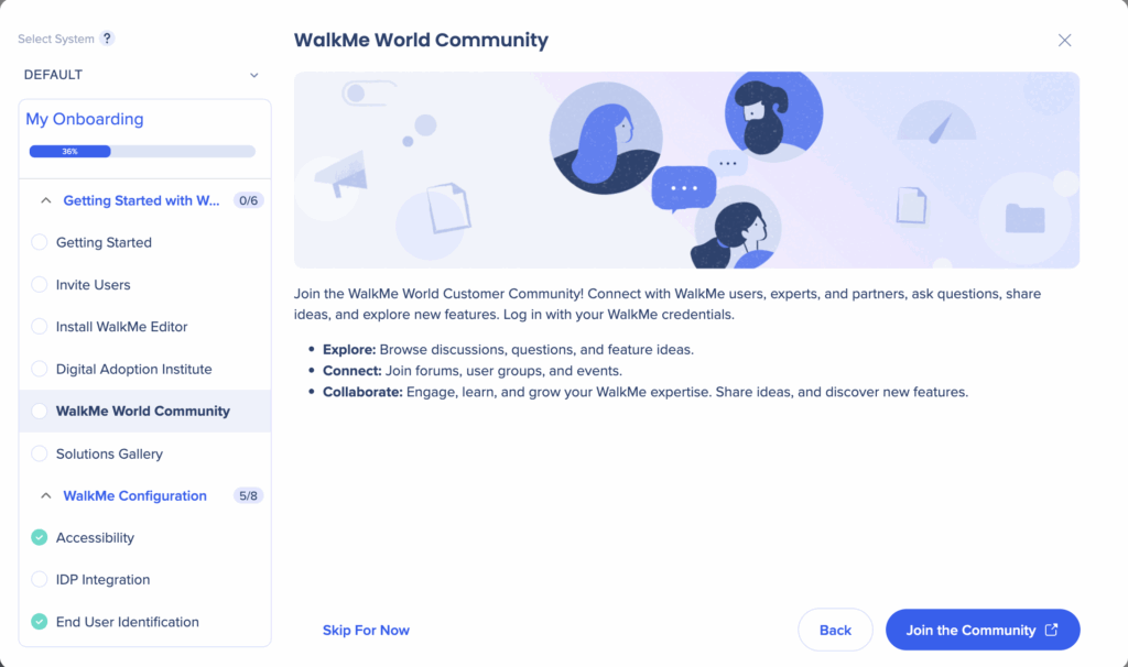 Accédez à la communauté en utilisant vos identifiants WalkMe.