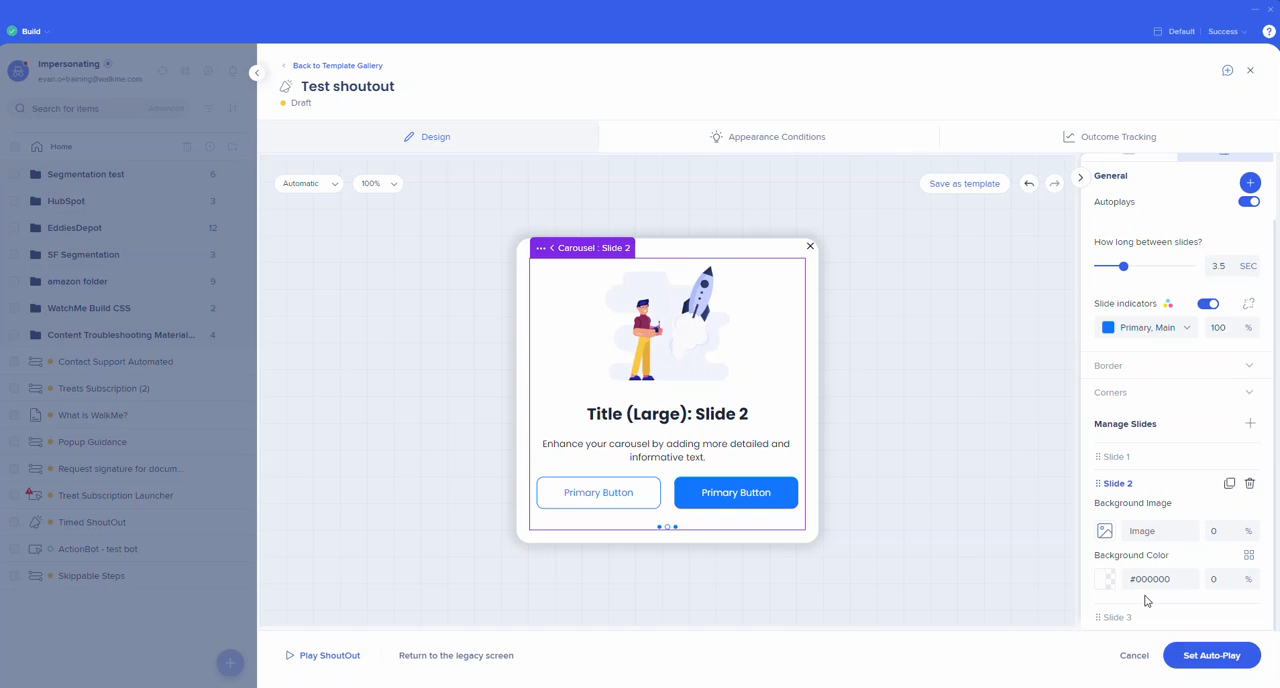 Create engaging ShoutOuts with carousel layouts, background images, and timed display options