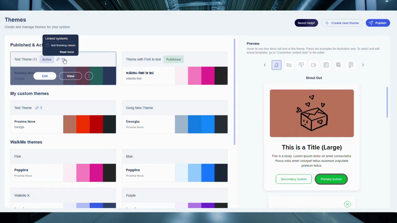 Create and apply themes to unify design across WalkMe applications