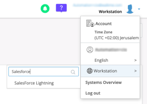 4. システムスイッチのドロップダウンは、すべてのシステムの概要を提供するアプリでは、無効になっています(例:ワークフロー、アクティビティボード、ビルダーアシスタント)。
