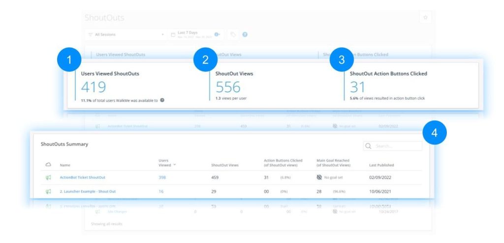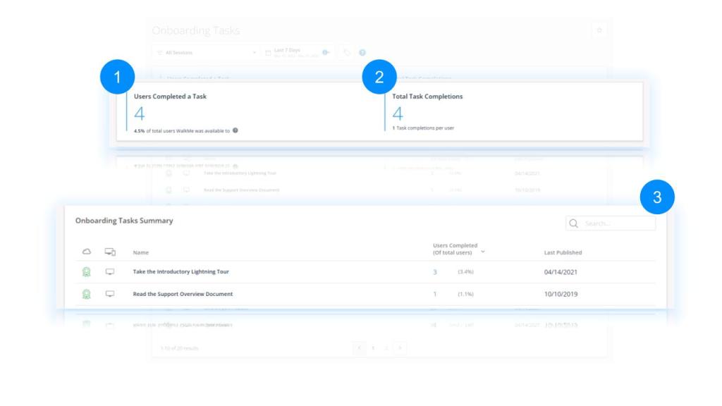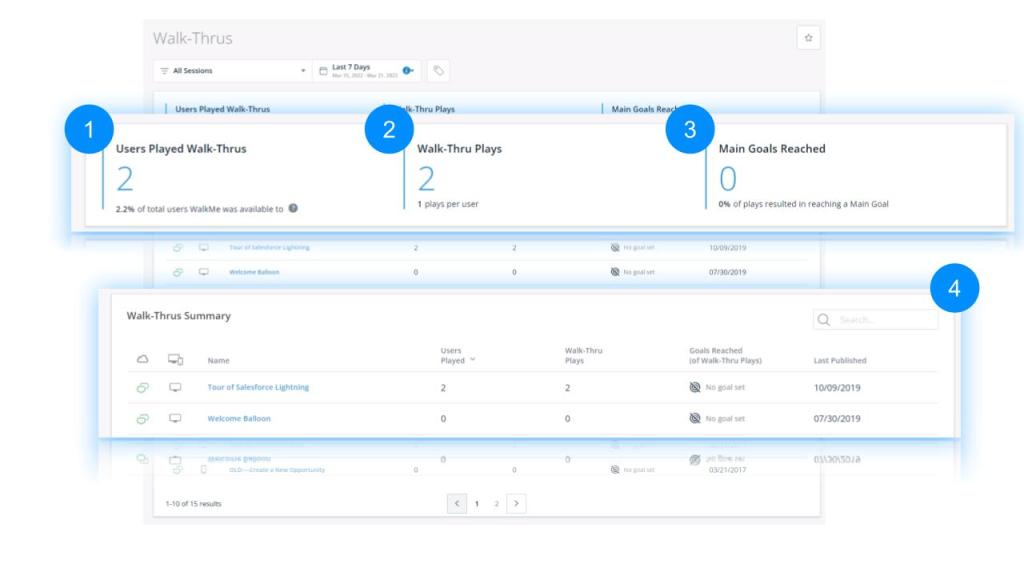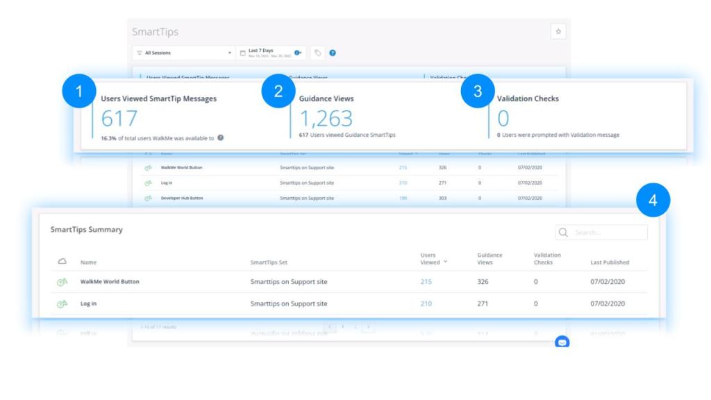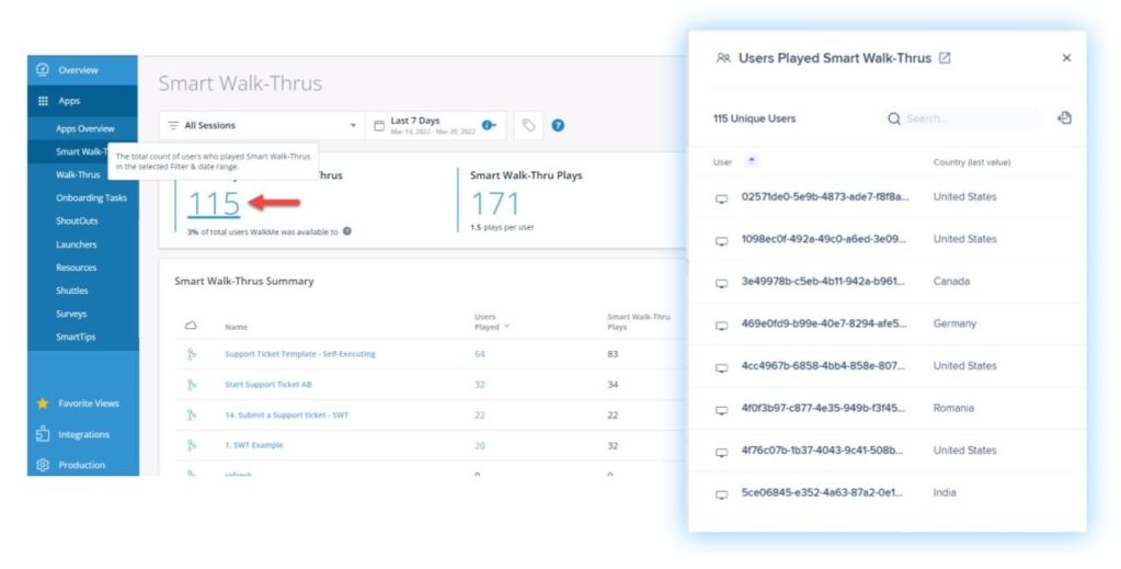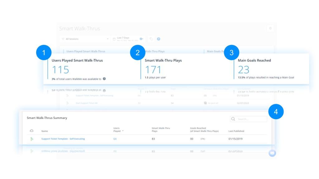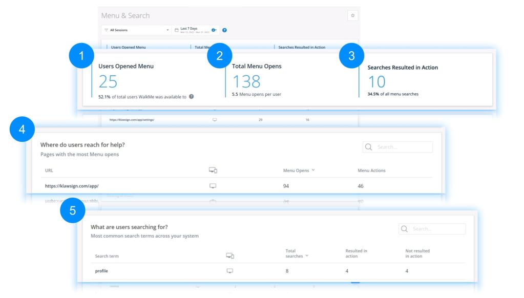 ユーザーが日常的にWalkMeをどのように利用しているか、また、既存のソリューションをどのように改善すればより良い結果を得られるかを理解するのに役立つ重要な情報をご覧いただけます。