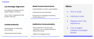 以下の内容は、プログラム的なアプローチに移行する際に注意すべき一般的な落とし穴です。 こうした問題に対処しないとリソースの非効率的な利用を生み、戦略面および運用面でのビジネスへの影響力が低下します。