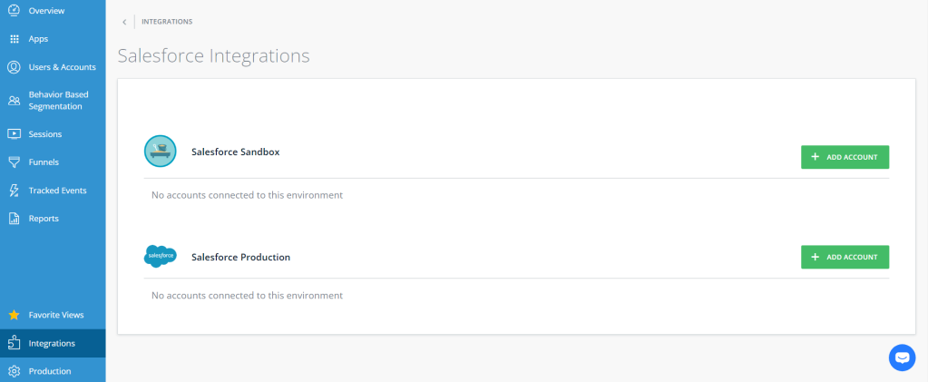 Production(本番環境)アカウントの接続は今でも、後からでも、好きな方を選ぶことができます。 通常は、サンドボックスアカウントで統合をテストし、その結果が期待通りのものであった後に、Production(本番環境)アカウントを接続します。