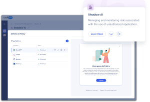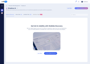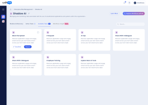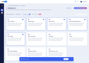 さらに、Discoveryを持つユーザーは、ワークフローの新しいタブとしてShadow AIアプリダッシュボードにアクセスできます。 このダッシュボードは、Discoveryのものと似ており、ユーザーはAIアプリを選択し、シャウトアウトを構築できます。 Discoveryで作成されたコンテンツは、ワークフロータスクに存在しますが、その逆も同様です。