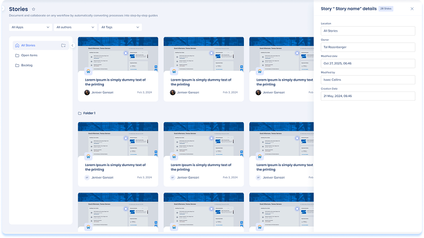フォルダーを使用して、トピック、チーム、またはユースケースごとにストーリーを整理します。