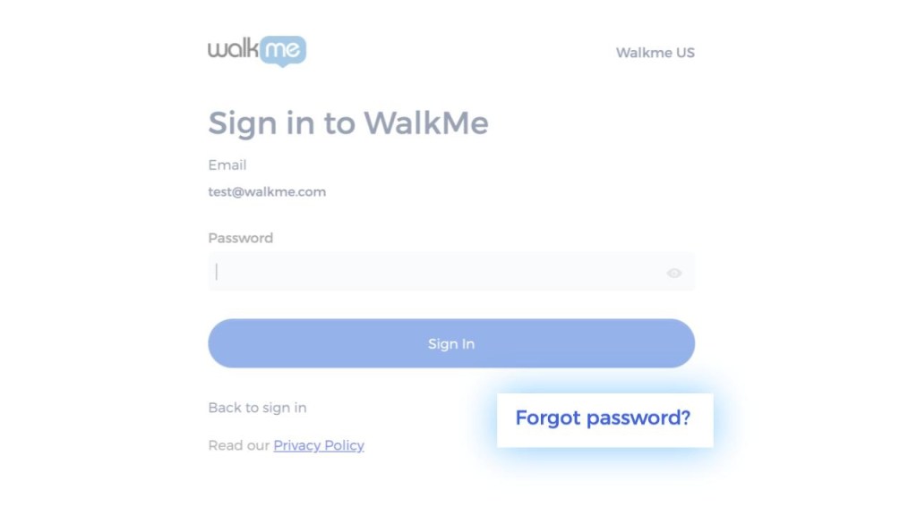 WalkMeアカウントのパスワードをリセットするには、以下の手順に従ってください。