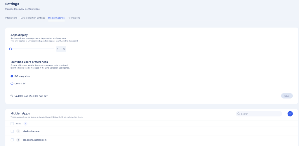 ユーザー設定から、ユーザー情報がどのように収集され、ダッシュボードに表示されるかを決定できます。 デフォルトでは、ユーザーアクティビティはハッシュ化され、詳細は非表示になります。 ただし、従業員の詳細を含むCSVファイルをアップロードするか、IDP(アイデンティティプロバイダー)と統合することで、ユーザーを特定できます。 この機能により、組織はユーザーのプライバシーを尊重しながら、ユーザーの行動を追跡し、潜在的な節約機会を特定できます。