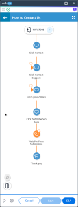 例えば、Smart Walk-Thruの一部の下の画像は iFrame内で再生されます。 同じiFrame内で2つのテストステップが再生されています。 Smart Walk-Thruに含まれるSwitch-to Frameステップは、すべての内容を適切なコンテキストで再生します。 黒い数字は、このテストが実行中に再生される順序を示しています。