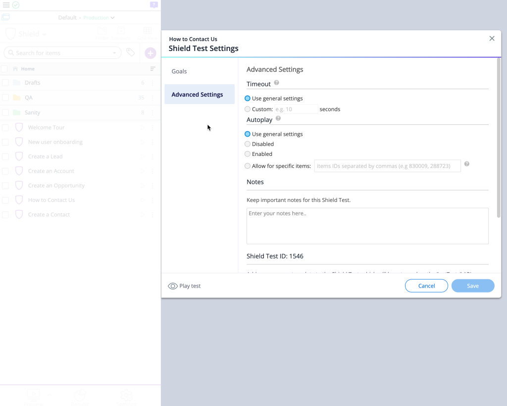 テスト中に特定のコンテンツを自動再生できるようにする必要がある場合、または一般的に自動再生を許可することを好む場合は、これはシールド設定で簡単に制御できます。 特定のテストの一般的な設定から除外したい場合は、これらの設定をテストレベルで行うことにより可能です。