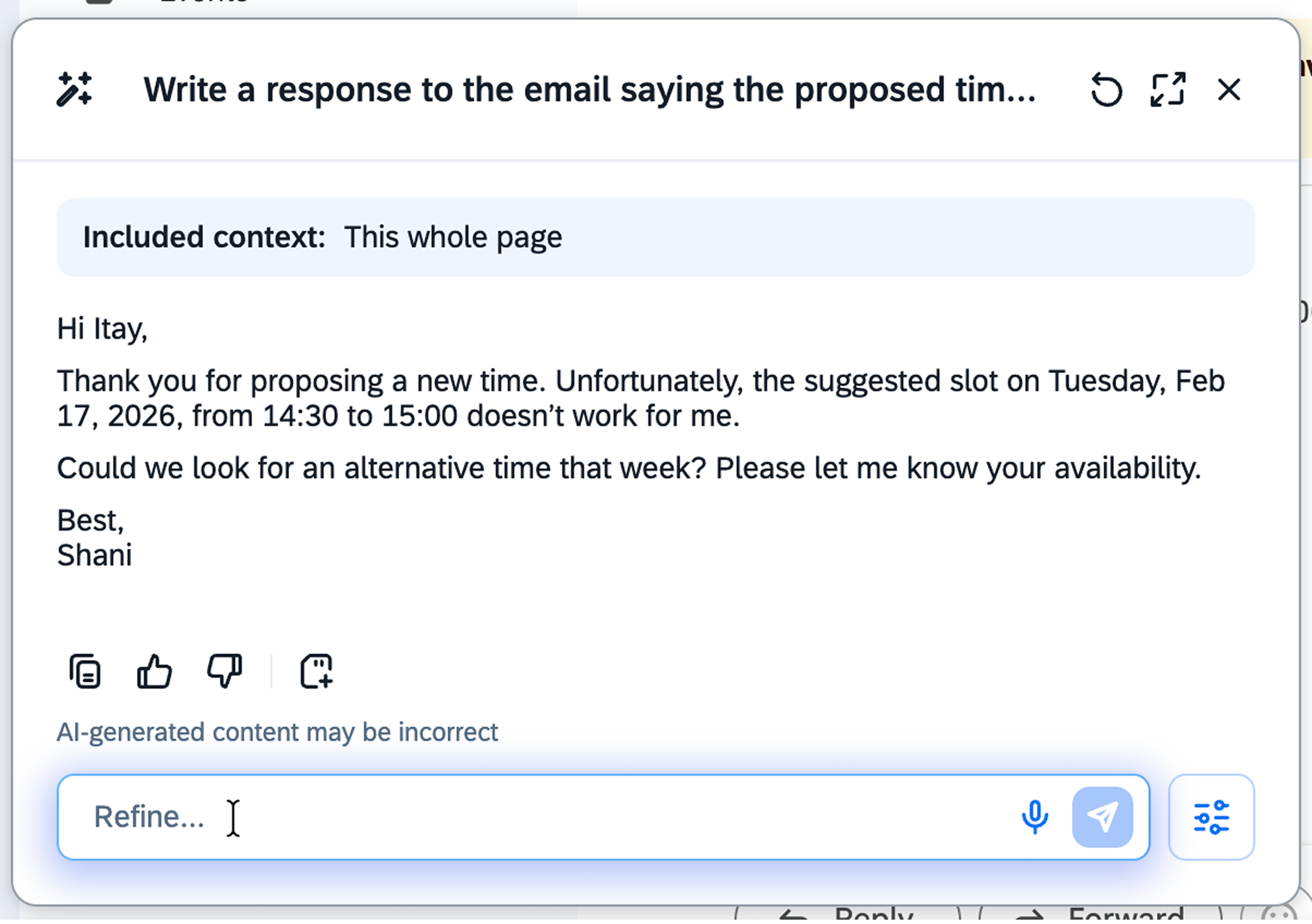 This feature allows you to ask additional questions or edit the output, creating multiple outputs from a single click