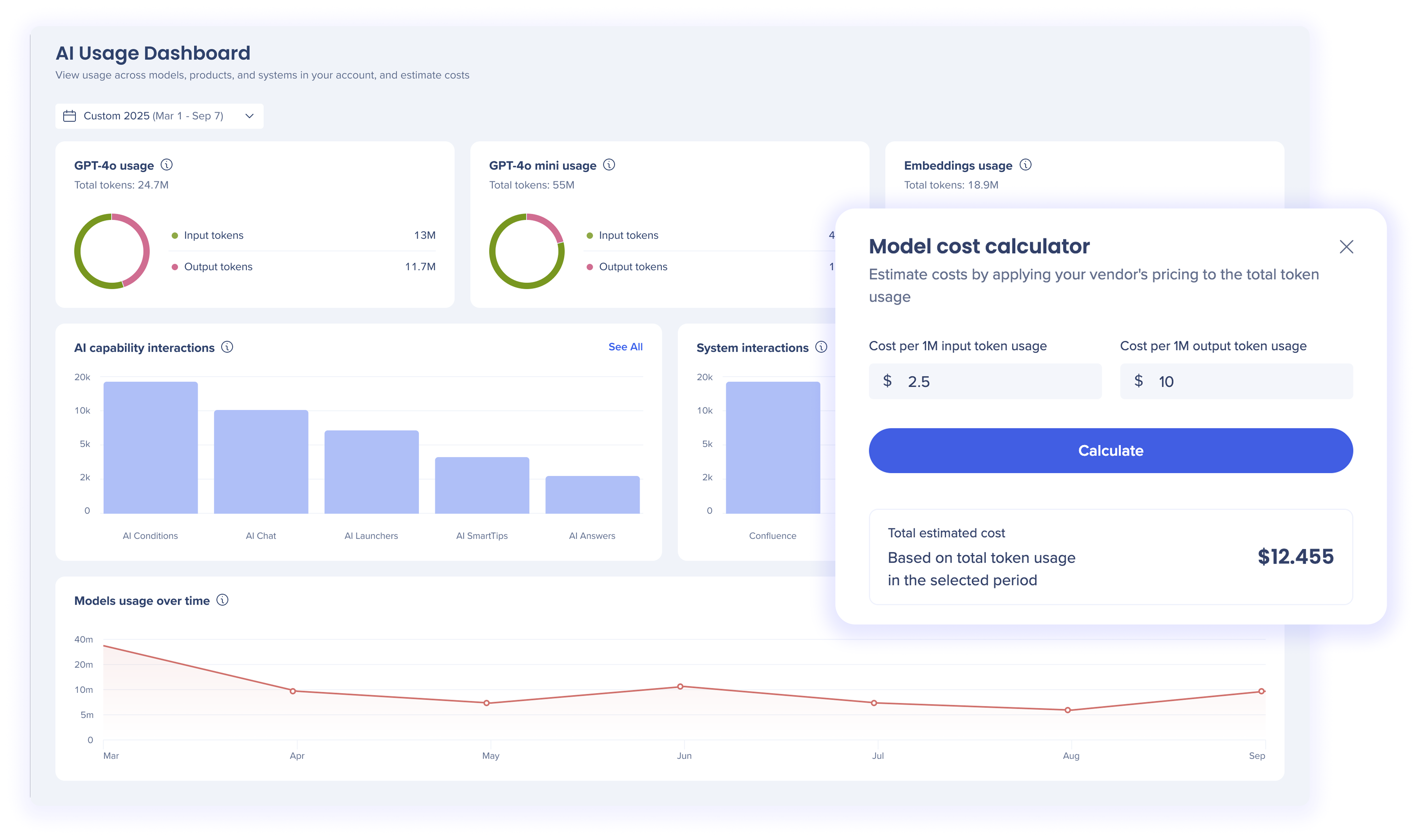Currently, the AI Usage Dashboard is available for customers using Custom LLM, allowing them to track AI unit consumption in real time and use this data to model and estimate costs.