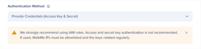 Enter the IAM role ARN (Amazon Resource Name) that WalkMe uses to access the bucket