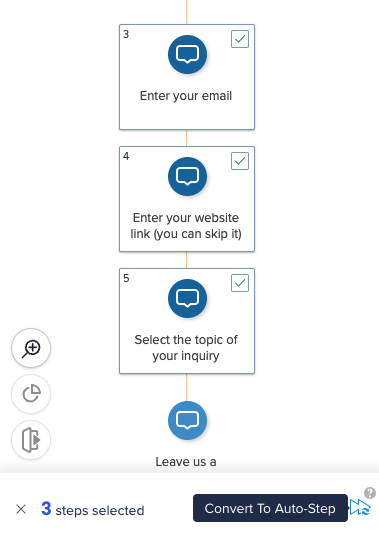 - In the footer of the editor, click the Convert icon (the icon varies depending on whether you're converting steps or auto-steps)