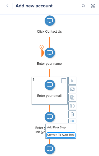 You can convert previously captured Smart Walk-Thru steps to auto-steps, or convert auto-steps back to regular steps. This feature helps you update or automate existing Smart Walk-Thrus without recapturing each step from scratch.