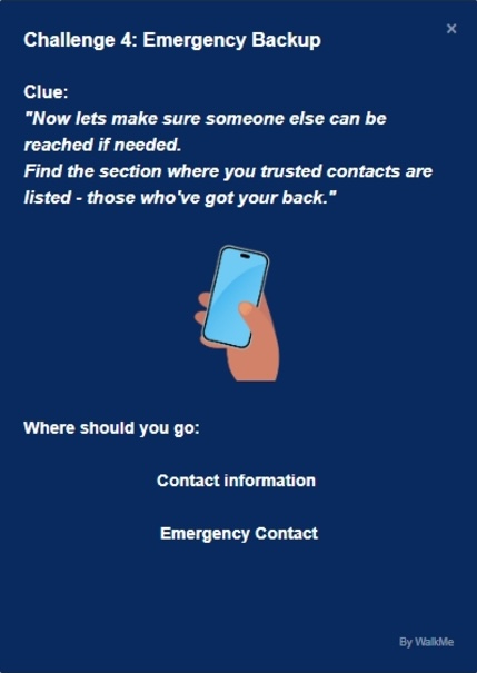 A digital scavenger hunt built with WalkMe might include some or all of these elements: