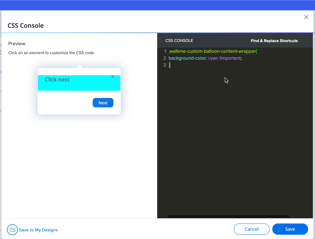 By default, the WalkMe theme design overrides any other design changes.