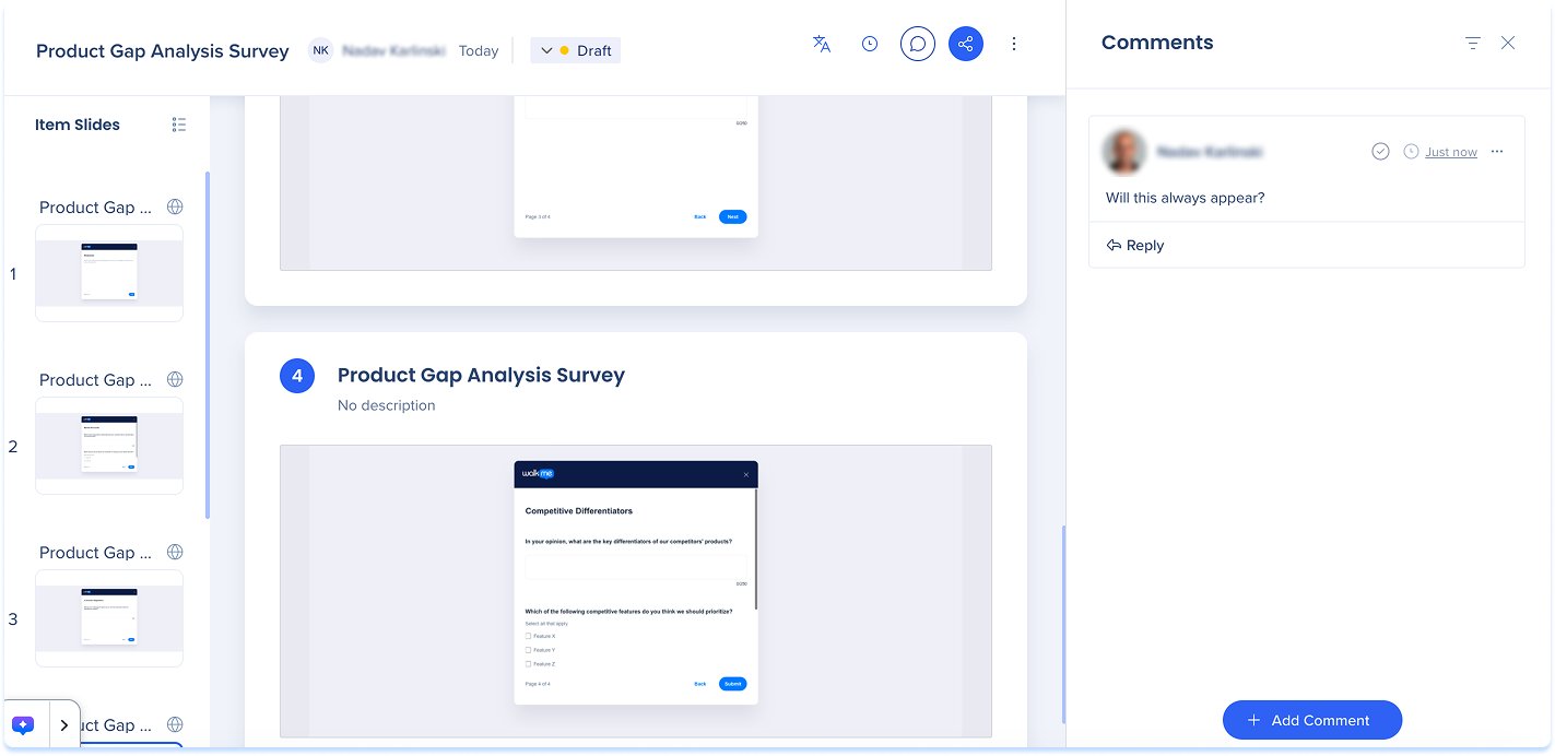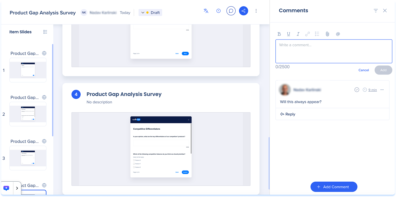 WalkMe Slides Comments
