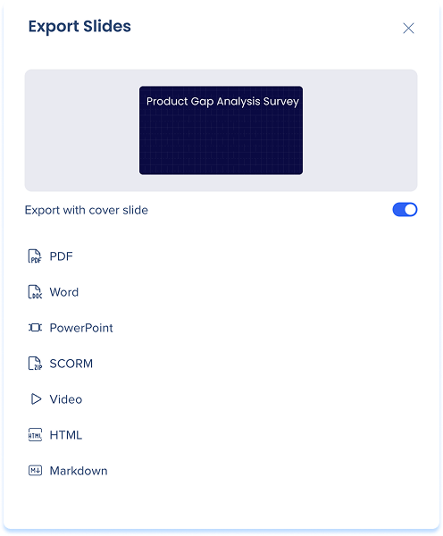 - Turn on Export with cover slide (optional)