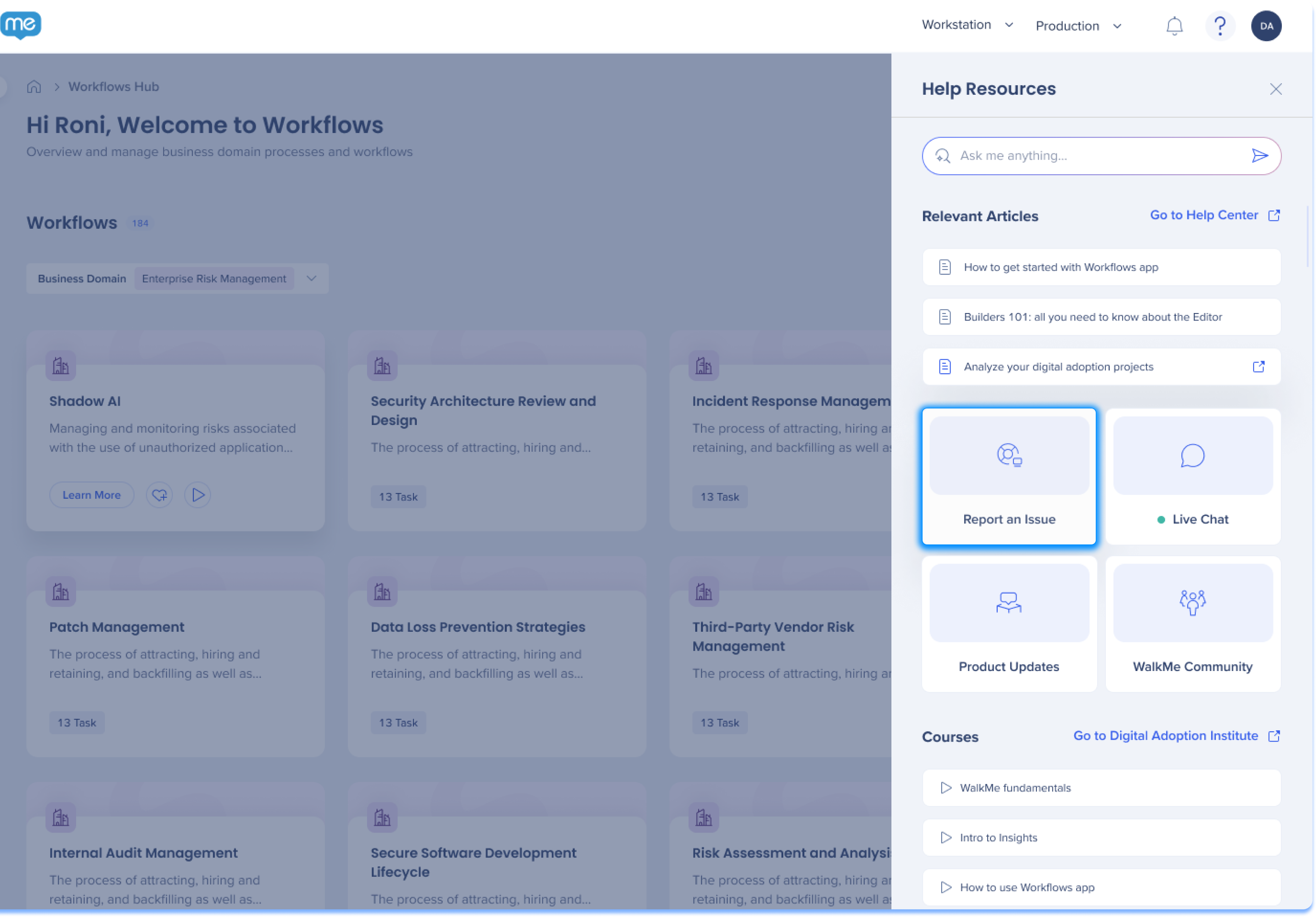- From the WalkMe Console Help Resources (select the ? icon in the upper-right corner)