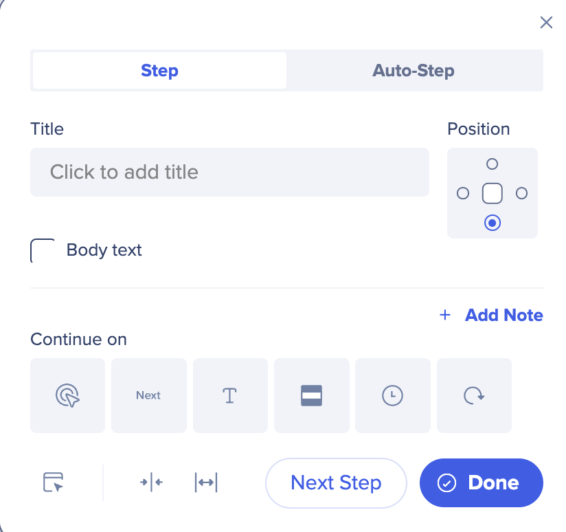 - Add note: Will appear in the editor and will only be visible to other WalkMe builders