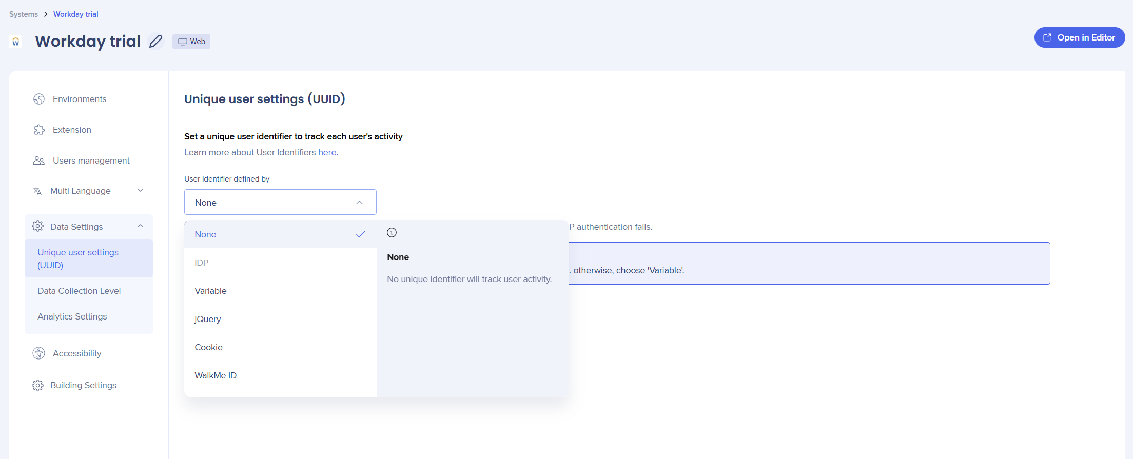 In the Multi-Language tab you can select how you want WalkMe to identify the site language.