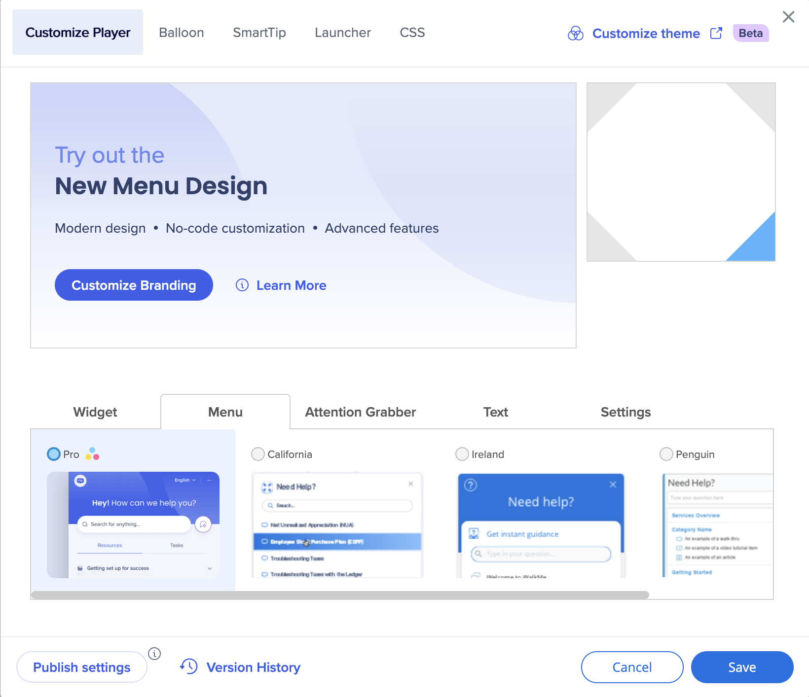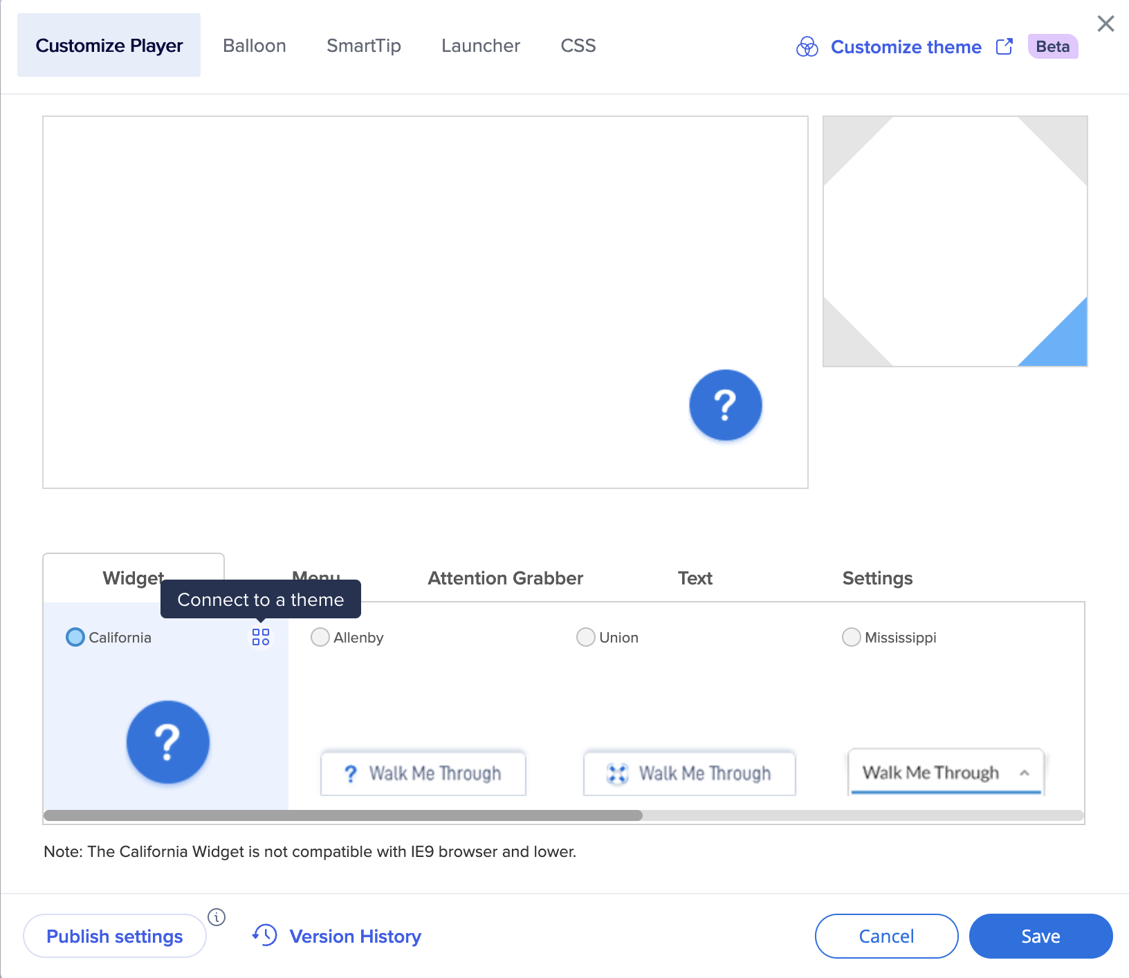 WalkMe Theming lets you style every element of your WalkMe content to match your brand—across the account. It's now (Fall release'25) available for all existing systems, but activating it requires manual conversion of your content as we intentionally avoid altering it.