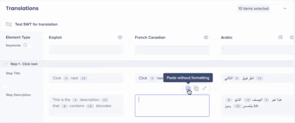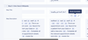 - Edit translations: Manually update text or use machine translation (if enabled)