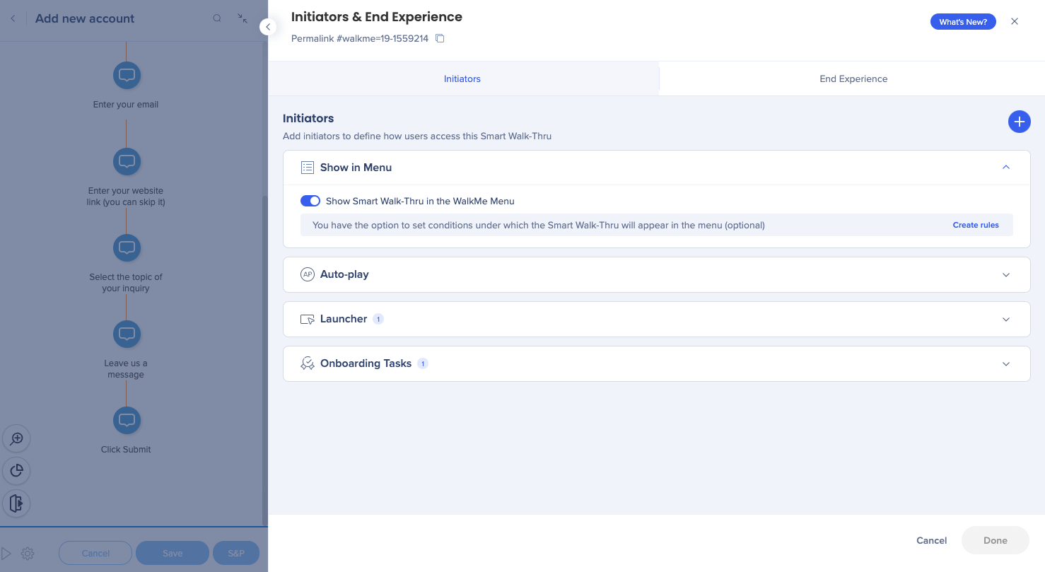 4. Enable Show Smart Walk-Thru in the WalkMe Menu